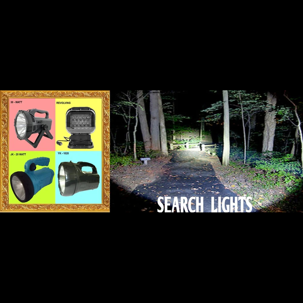 In order to fulfill the ever-changing demands of our clients, we have been engaged in offering Portable LED Search Lights. The provided LED searchlight is widely used by our clients due to its high ability to find objects in darkness. The offered searchlight features a maintenance-free, leak-proof sealed battery for reliable performance. Each LED searchlight is tested on several parameters to ensure a defect-free range before delivery.