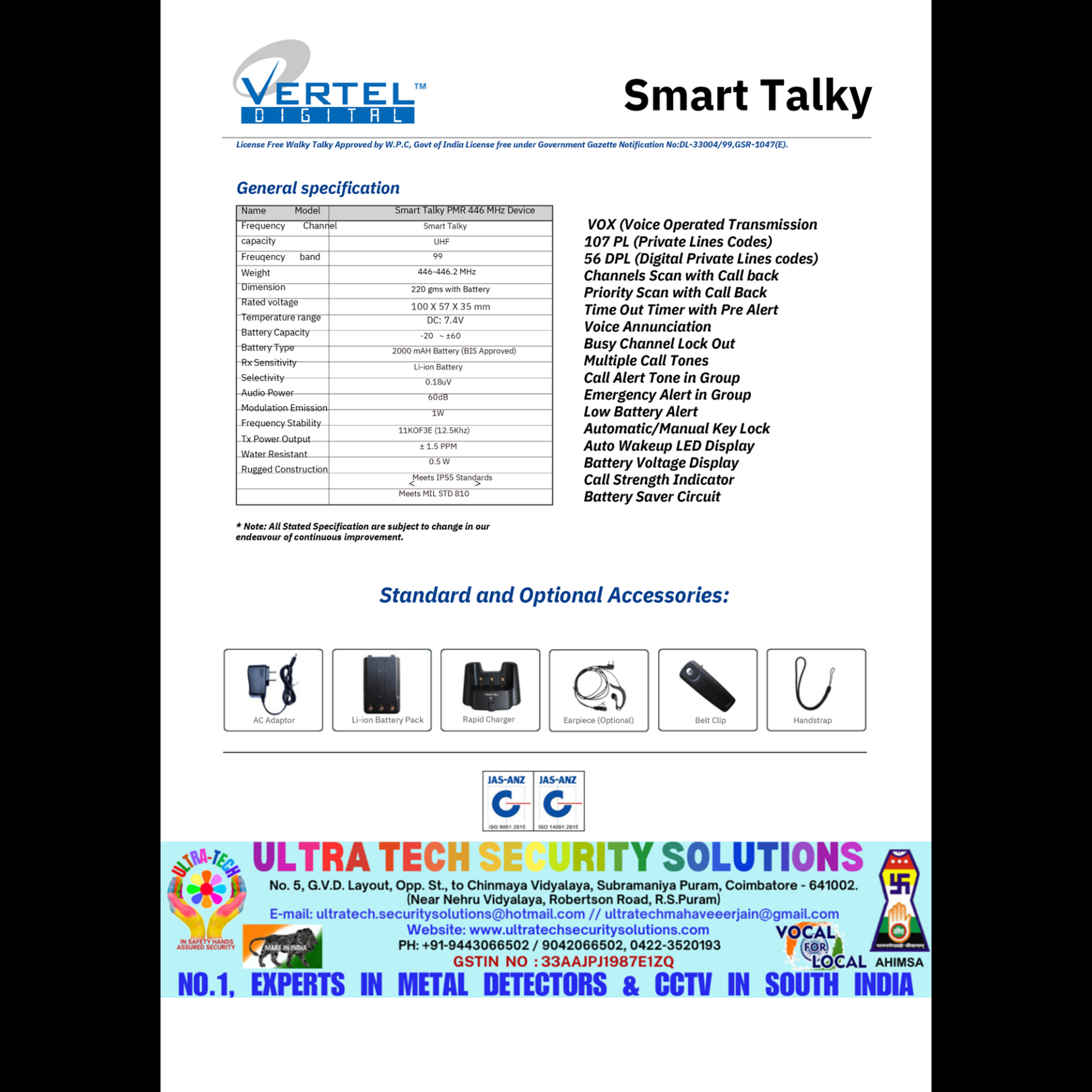 We are leading wholesalers of Vertel “SMART TALKY” walkie talkies. It is WPC approved with Equipment Type Approval Certificate No: ETA – SD-20190702350.